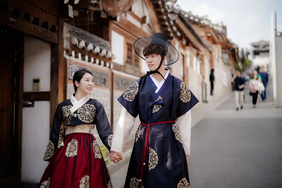 Корейский национальный костюм, который является национальной праздничной одеждой, называется ханбок. Он сохранился практически в неизменном виде на протяжении нескольких тысячелетий. Корейский женский национальный костюм состоит из трех основных частей: чогори — это верхняя рубашка, чхима – юбка А-образного силуэта, откорым – это широкие и длинные ленты, которые не дают рубашке распахиваться и представляют собой декоративный элемент костюма.